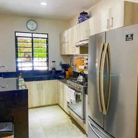 Die Casa Centrica 5Bed/5Bath Ac/Gym 5 Min 5Ta Av Y Playa bietet einen Kühlschrank, einen Herd und Küchenutensilien in eine komplette Küche. Nur 250 Meter von hier entfernt finden Sie das Restaurant Gaspachos de la Quince, das leckere Gerichte serviert.